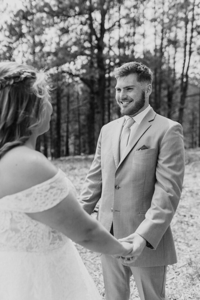 We’ve all heard the phrase, right? “Find someone who looks at you the way ____ looks at ____.” The way we look at each other is a unique, innate, and immediate emotional response. It doesn’t require staging or intervention. It’s raw and human. It’s an outward expression of an internal feeling—a visual manifestation of a heart swell. That’s why “first look” photos are on almost every bride’s shot list! But whether you’re planning a separate “first look” before you walk down the aisle, or you’re leaving the reaction for the moment itself, there are plenty of “first looks” wedding photographers are looking out for.